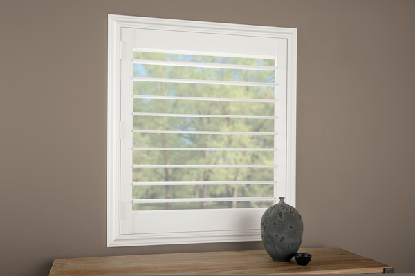 Shutters can be a great option for achieving your light control preferences. Tilt rods and louver sizes play an important role in light control. Wide louvers provide the best view outside while letting in optimal sunlight. The amount of light being let in can be adjusted by moving the tilt rods to darken the room and create more privacy.